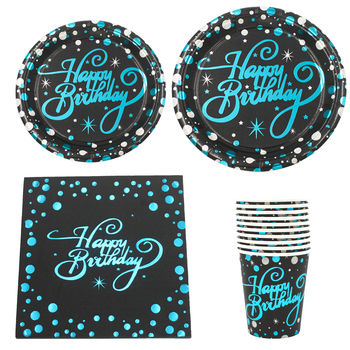 Foil Happy Birthday Party Set bicchieri di carta piatti cannucce tovagliolo stoviglie per decorazioni per feste di compleanno forniture o personalizzate